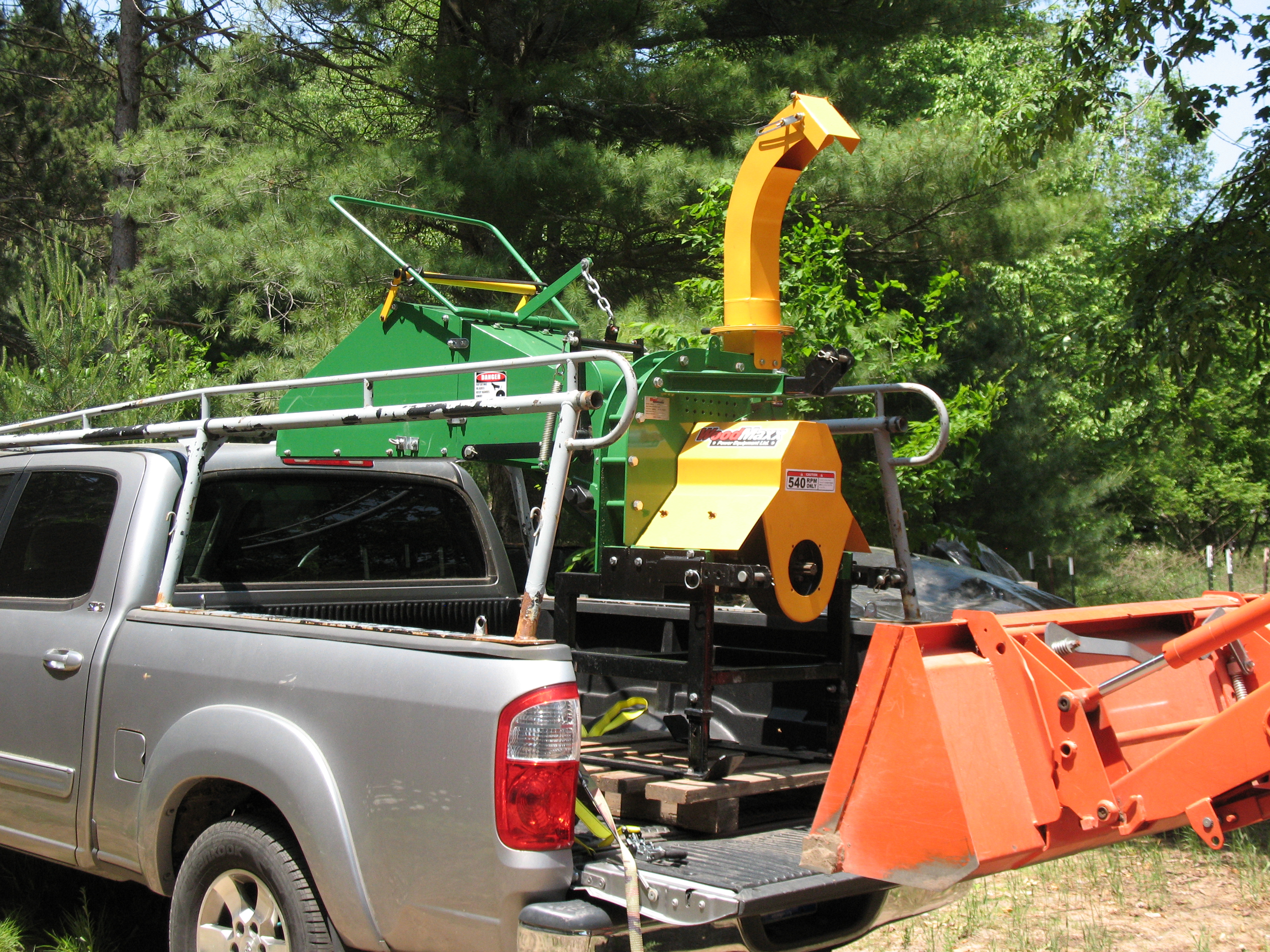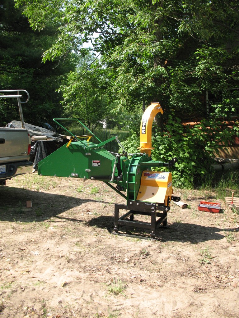 After much research and asking around, we opted for a chipper that runs off the tractor PTO. They’re sturdier, and, if you properly plan your worksite, they use less fuel. They’re substantially more expensive, because they have to be sturdy enough to withstand the extra horsepower of the tractor. (Whoa, Nellie!) While the stand-alone models take much abuse and wear out–the 3 point chippers can last forever. We looked at everything on the market–and came out with a wish list for a self-feeding, horizontal feed model. We not getting younger, and the gravity feed chippers guarantee a lot of overhead wrestling with awkward materials. There’s a safety feature in it too, since self-feeding keep your hands further back, away from the awesome grinding machinery.