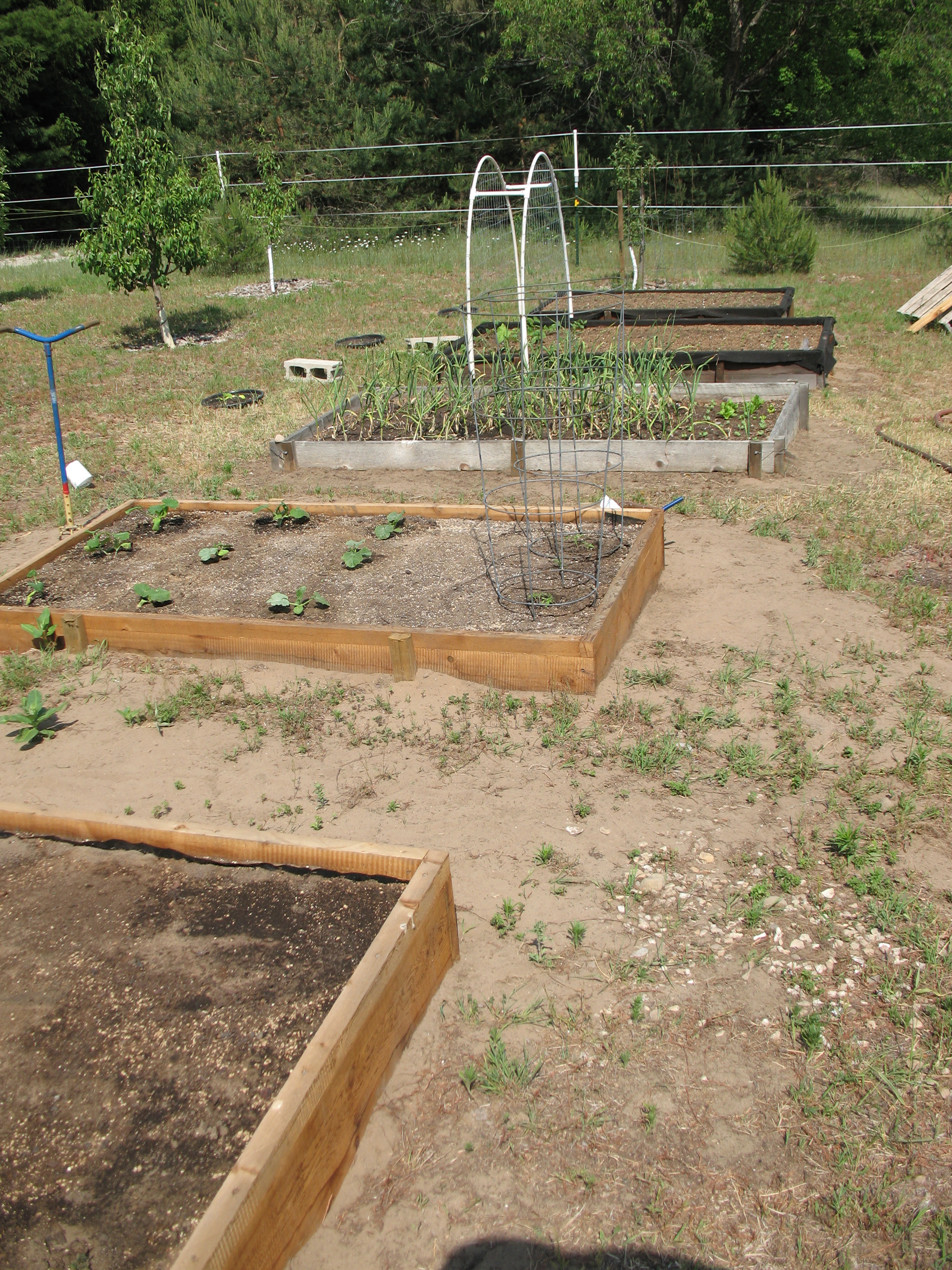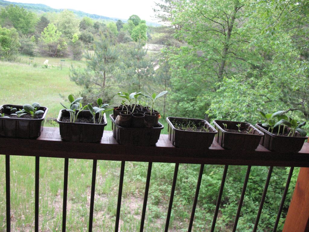 In any event, the garden is almost entirely in, and up. Seeds, prompted by the heat, are sprouting in record times. Seedlings, delicately watered three times a day, are surviving the heat, and transplant shock. This is the first year we’ve planted the garden entirely by seeds–starts nurtured in the basement during cold and carried out daily to enjoy the sun on warm afternoons. It’s much less expensive this way, and you have more control over the variety–not doomed to the fancies of our local nurseries.
