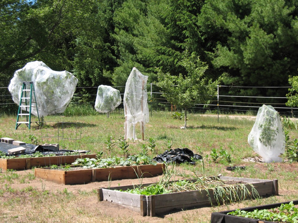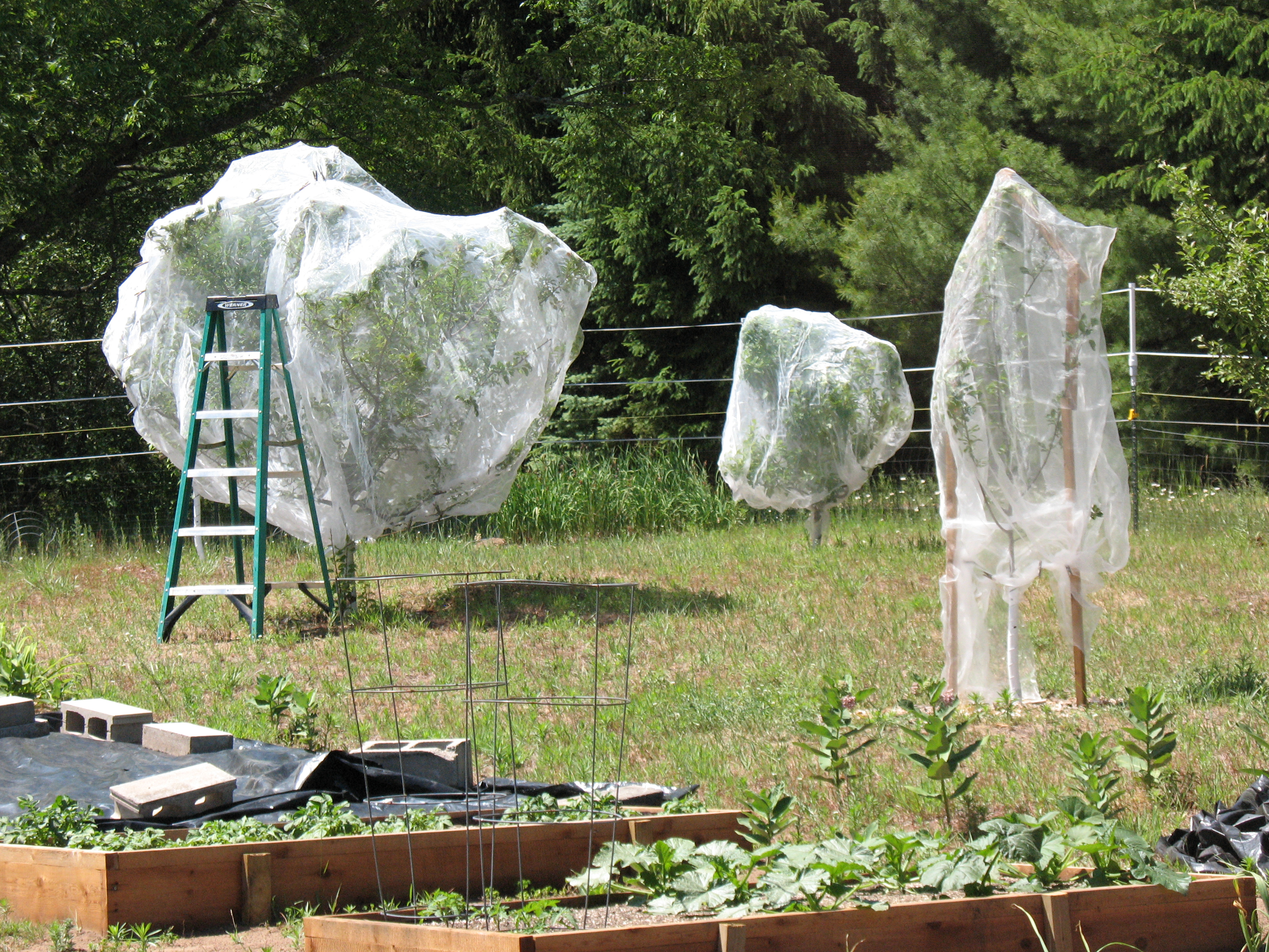 My biggest challenge is the rose chafers. We lost a plum tree to their damage last year, but this year, we’re ready. We bought bug-netting, and we’re going to wrap them like lollipops. So there!