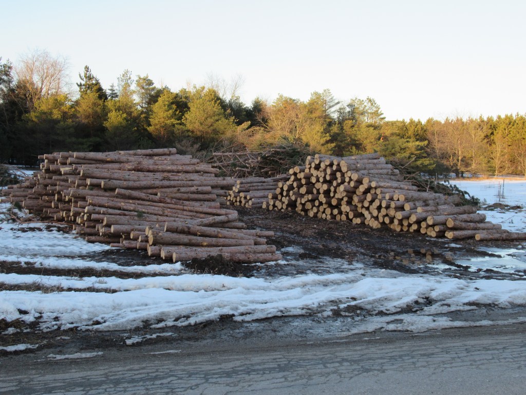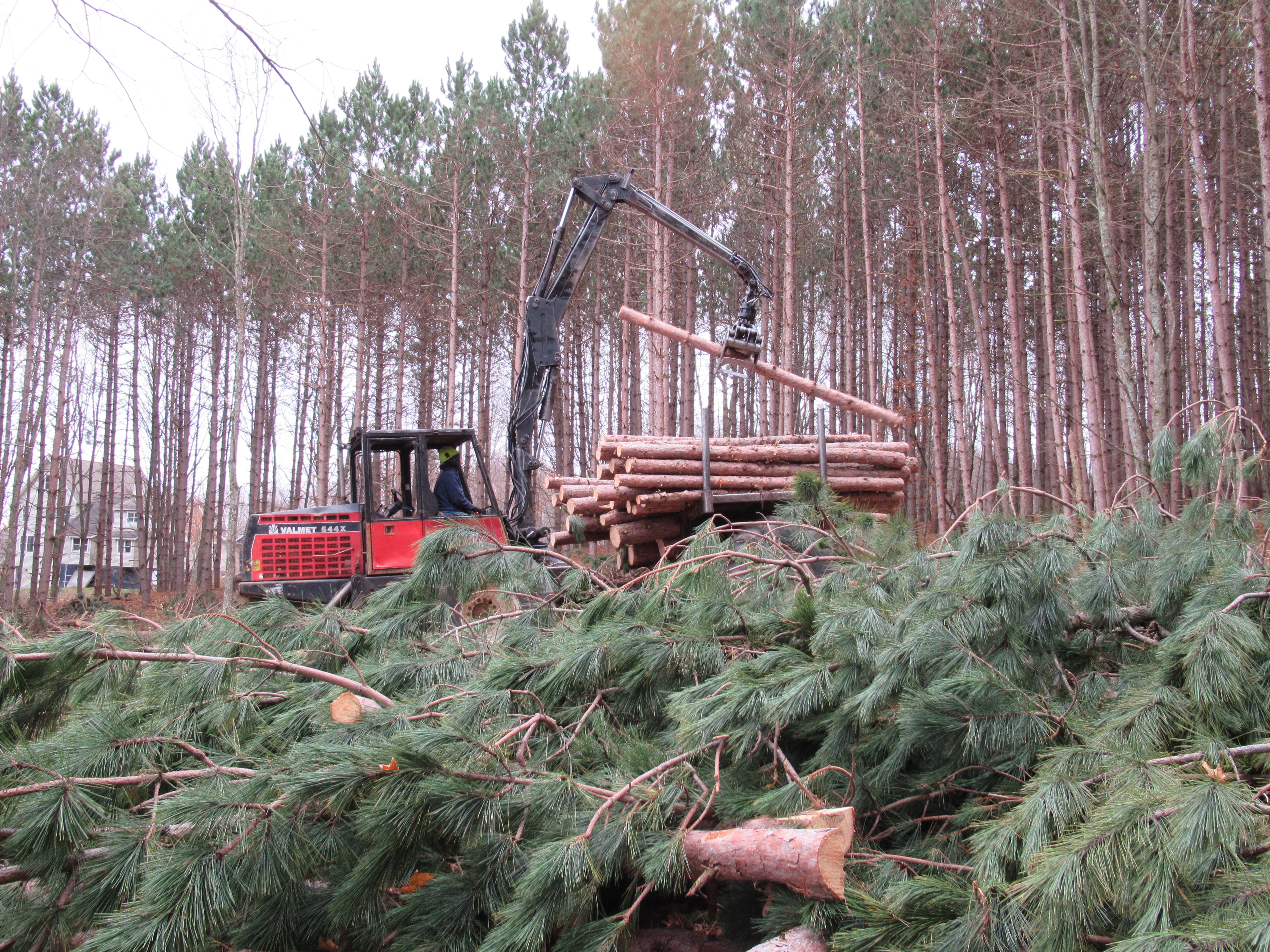 We were grappling with how to handle the previous year’s diagnosis of brown spot needle blight on our Scots Pines out front. Remember, we are tree-huggers. Hundreds of trees were infected, and our State’s Ag University (MSU) advised us that we should cut all affected trees—and quickly—to prevent it from spreading.*The scope of the job was well over our heads, so the search began. Unfortunately, there is no timber value to the Scots Pines. They can be chipped, but they are not a viable commercial logging option. We were concerned that any delay could result in the blight’s spread to the acres of plantation red pines back behind the house. We connected with a local outfit—who were slow to come up with a bid for the work.