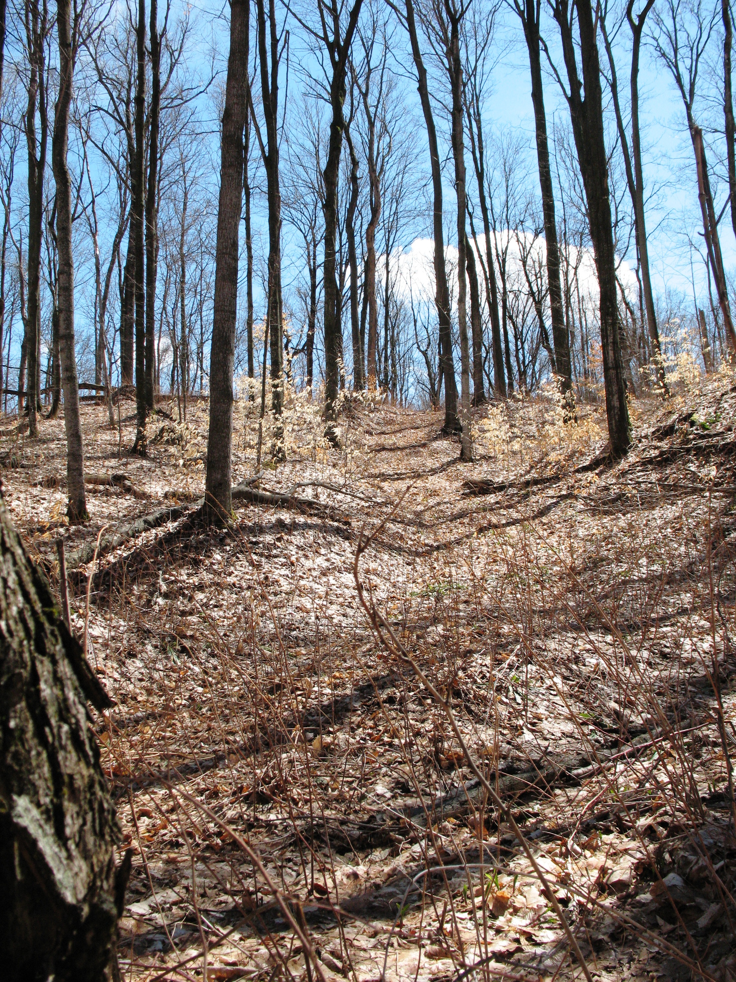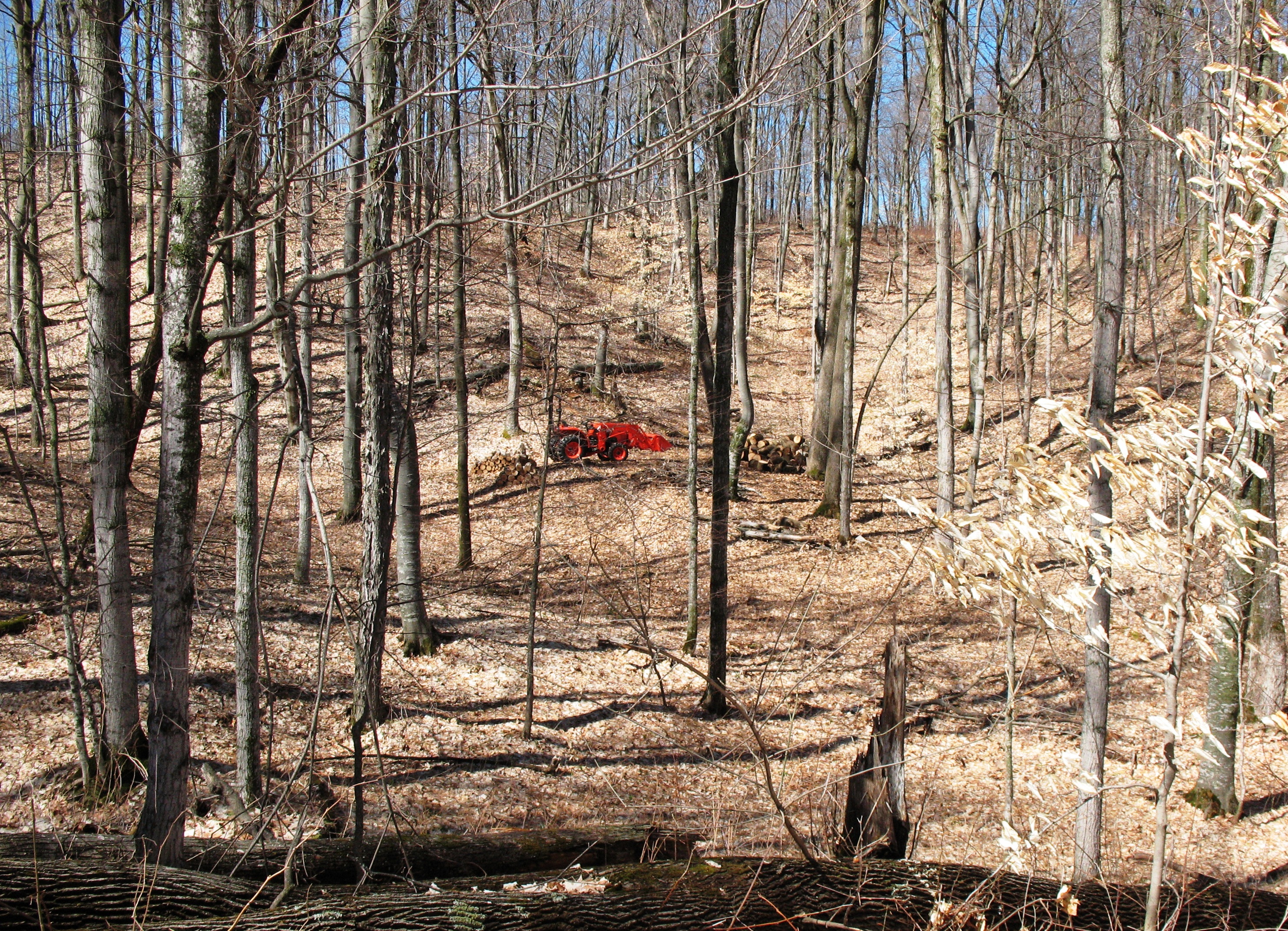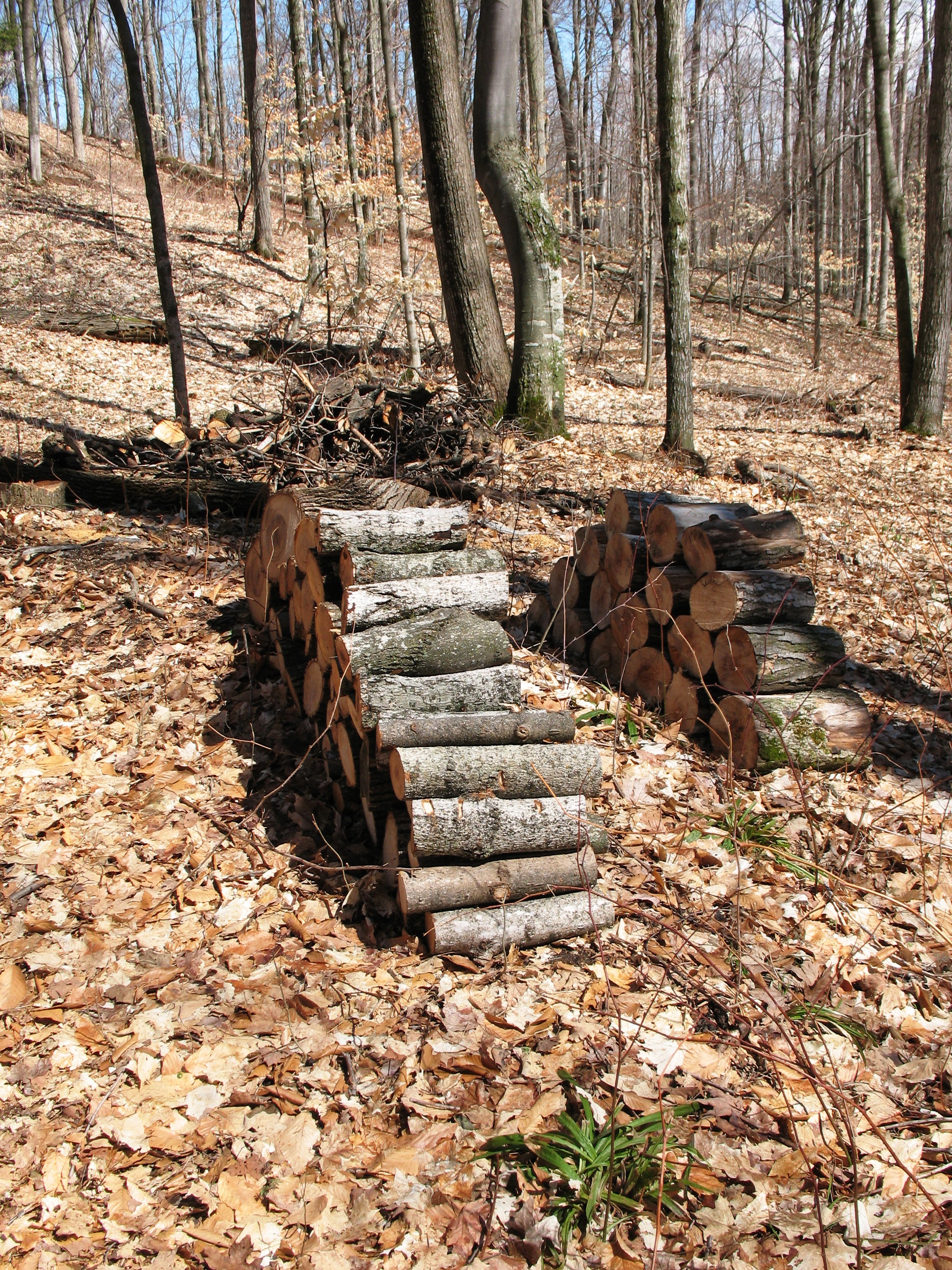 “It all burns,” says Rick as we set out to harvest the deadfall to heat our home. We avoid conifers—because they burn dirty, but everything else that drops to the forest floor is fair game. We’re still burning ash—the last remnants from the ash die off, courtesy of another hitchhiker, the Emerald Ash Borer. Ash is a lovely firewood that burns long and clean. Our mix includes American Black Cherry, Ash, Beech, Maple, and a smattering of Hophornbeam. The only downside to the Beech is that you need more of it to get through the winter. If you’re relying on a glance of the total volume of the total cut and stacked firewood supply, you could run short. We’re running a little short this year. We have back up supplies, so we’ll be fine, but I made the mistake of forgetting to discount the beech when I stocked the woodshed. I remember harvesting the beech, several years ago. Rick was eager to get to some of the ash, but beech trees had fallen across the trail…so beech it was.