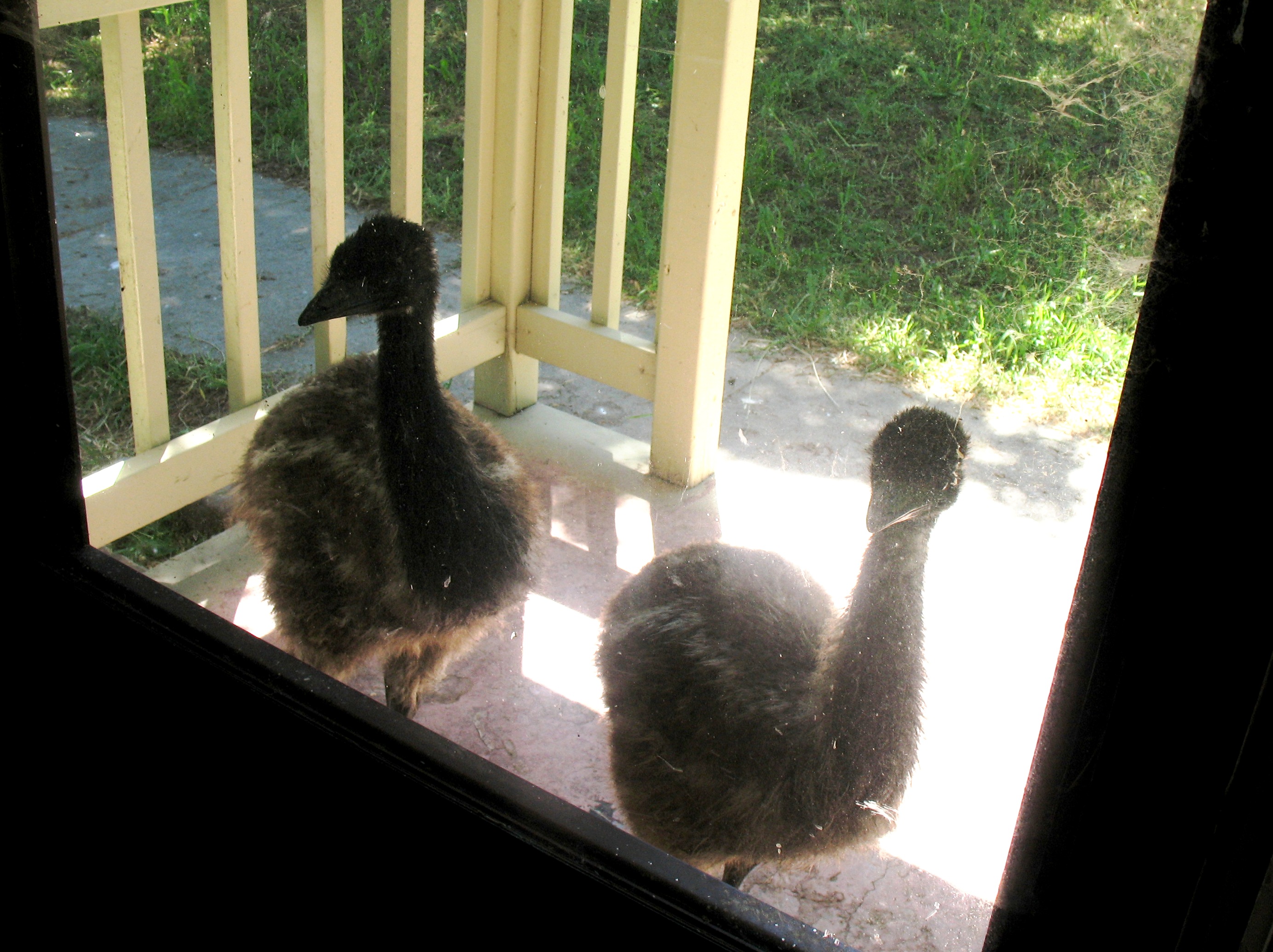 Today, we headed back over and found Mr. Emu in one of his usual spots—walking the perimeter of the lower field, near the road. We fed him apple pieces and emu chow, and life (as if we can ever truly understand it,) seems to have returned to normal. That is, if you consider five emu chicks living in your bathroom, normal.