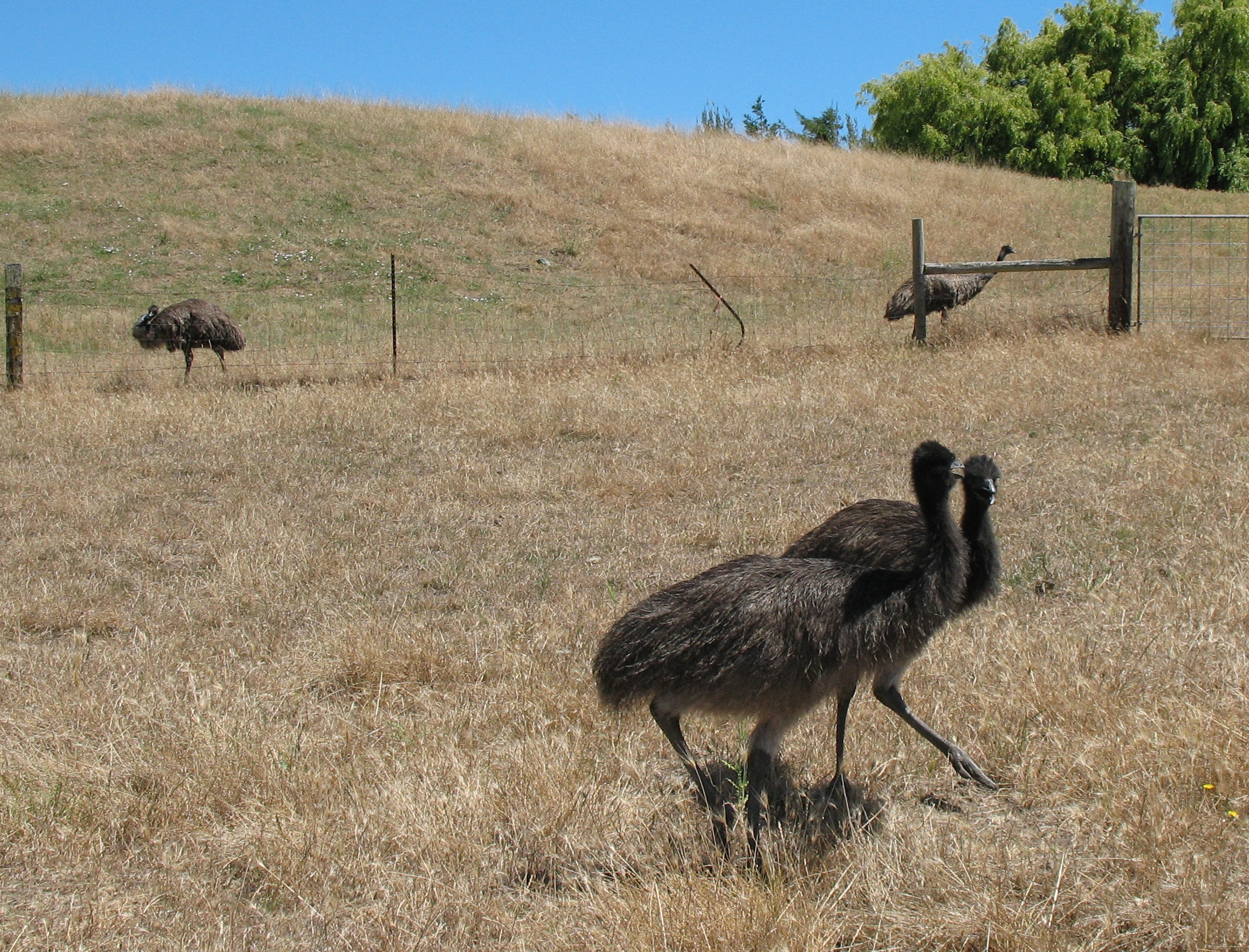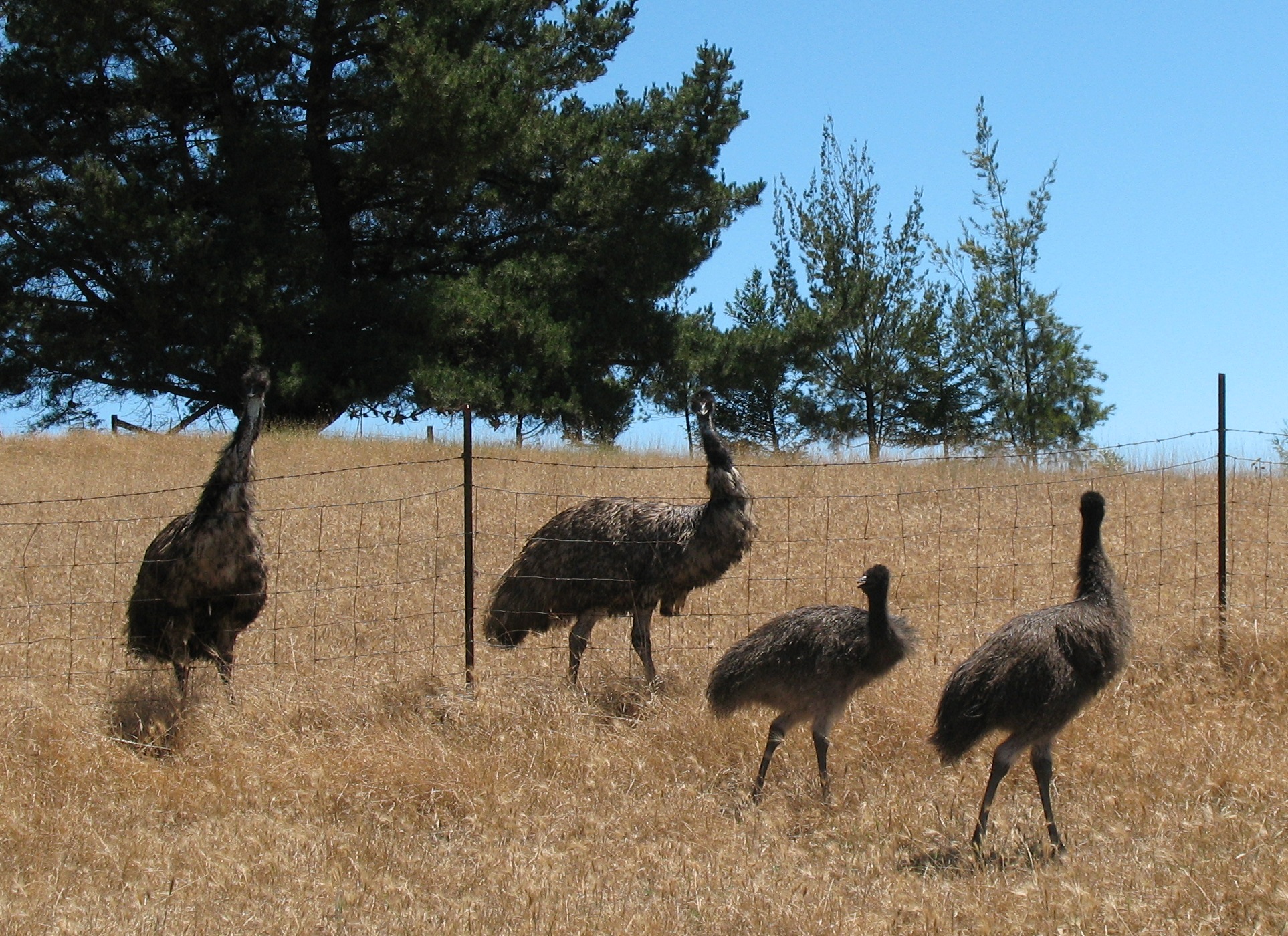 It was then that we noticed two lambs that were trapped between a pair of fences that ran between this and an adjacent field. (A 6’ wide strip was planted with trees to create a wind-break, and the fences protect the young trees from the sheep.) How the lambs got themselves trapped in there, or how long they’d been there was unknown, but before we took on this unexpected task, we still needed to solve the mystery of the missing emu.