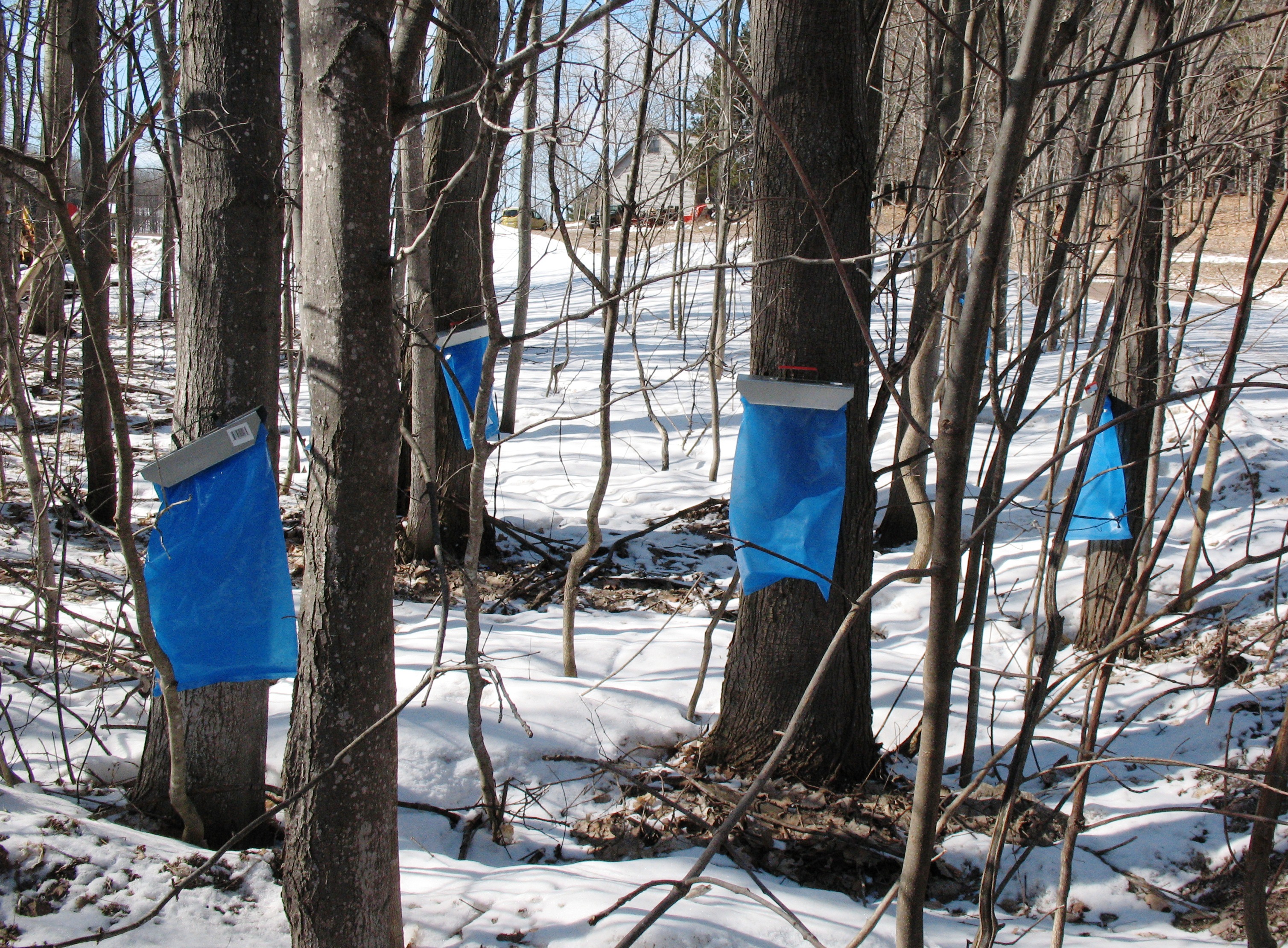 We wanted to be strategic about the signs. Posting the entire property would be time consuming and expensive. We concentrated our efforts on those areas of known (or suspected) incursion. The back line was easy. Our neighbors had posted numerous, bold, NO TRESPASSING signs, facing in our direction. (They’d even put hand-written additions to their signs, “no cross-country skiing, no hiking.” Sheesh!) We simply posted our orange, day-glo signs to the backs of theirs. There’s a comfortable, tit-for-tat in it, that is satisfying.