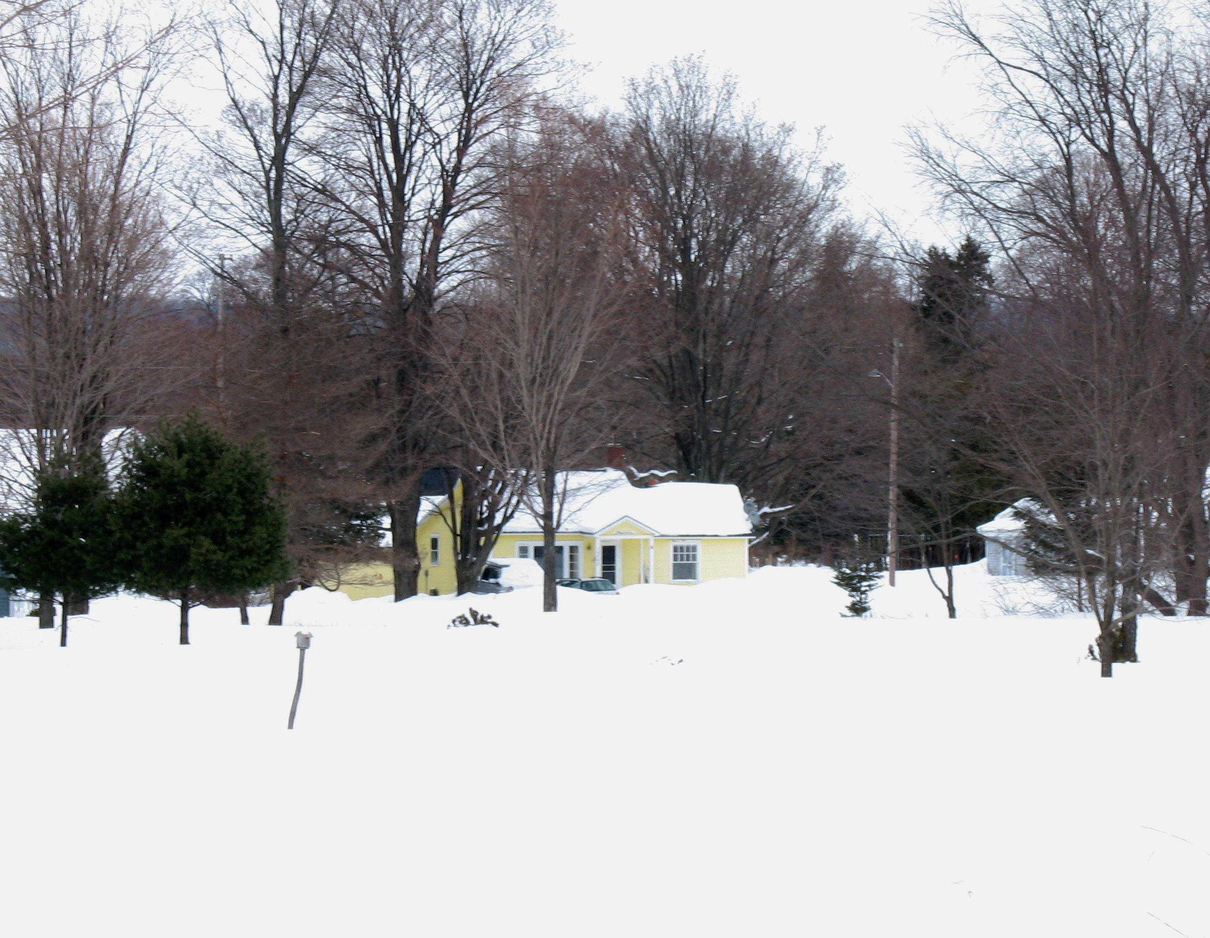 In the past few days, we’ve seen about nine inches of new snow–the dry, powdery, fine stuff that you see in really cold weather. It doesn’t stick. It won’t pack for snowballs or snowmen. It’s tough to walk on. It blows every which way, with even a puff of wind. When Rick is out with the snow-blower, he looks like his own mini-blizzard. Everyone has their own little microclimate, depending on how close you are to the lake, how frozen the lake is, or isn’t, and whether you’re in hills, woods or cleared areas. Driving into town, today, put us through three distinct climate changes. Even people who live a scant few miles from each other compare constantly. And, it’s competitive.